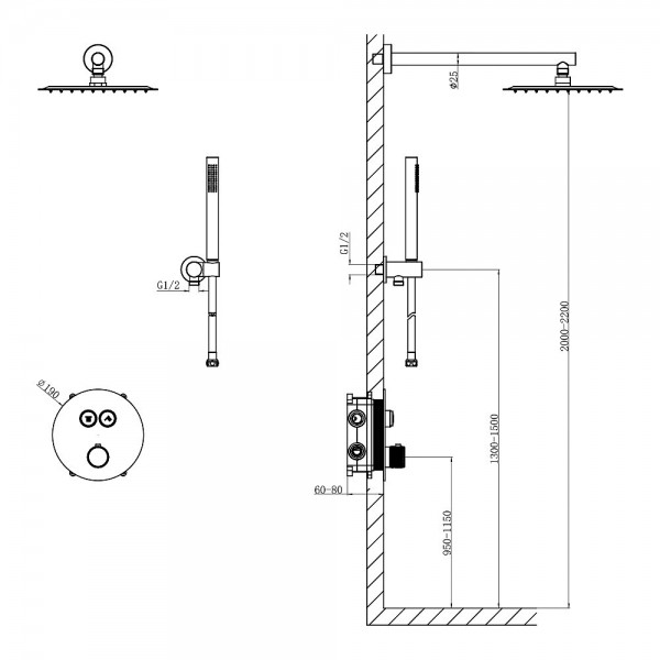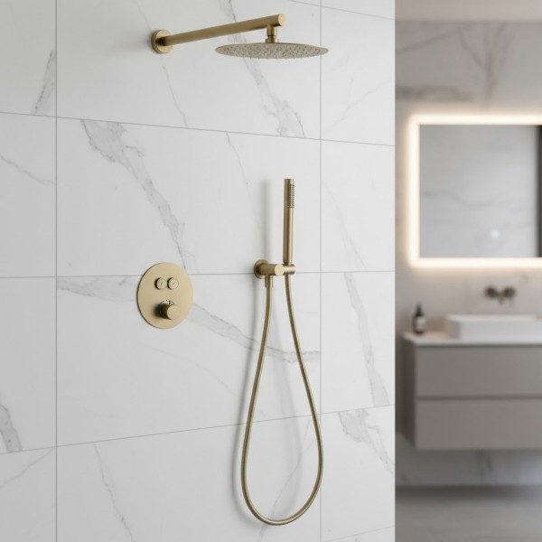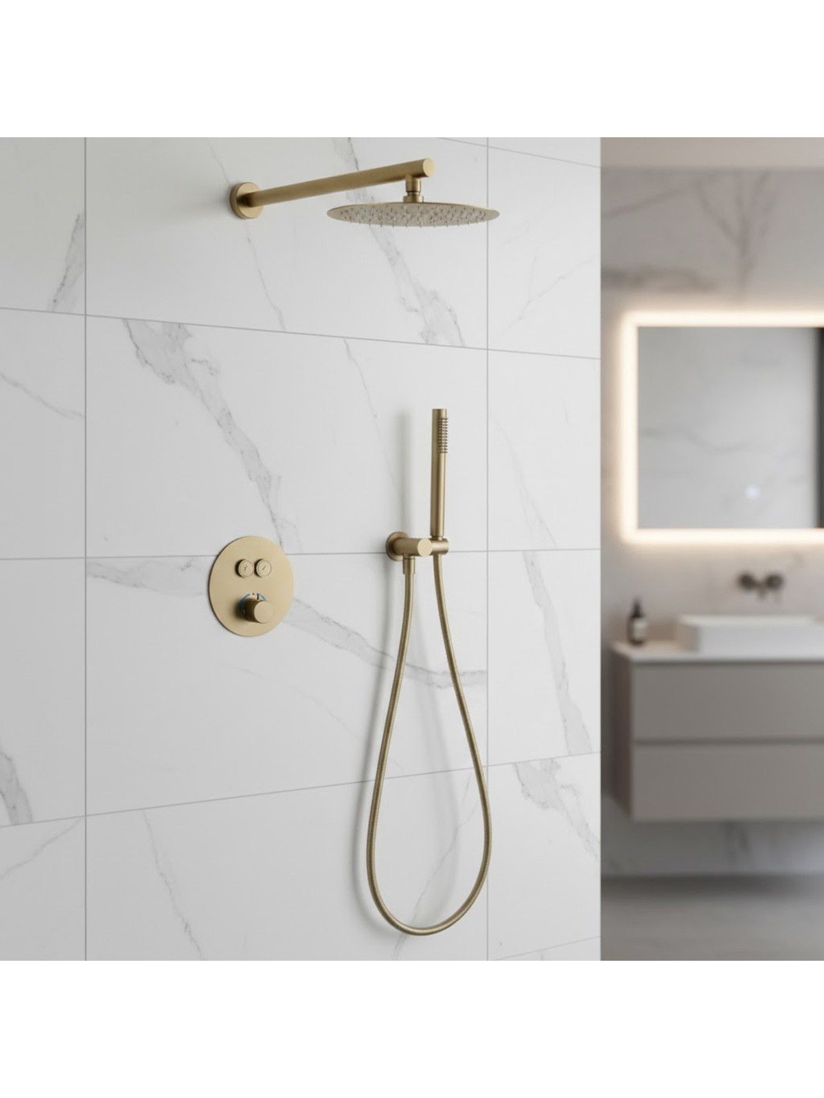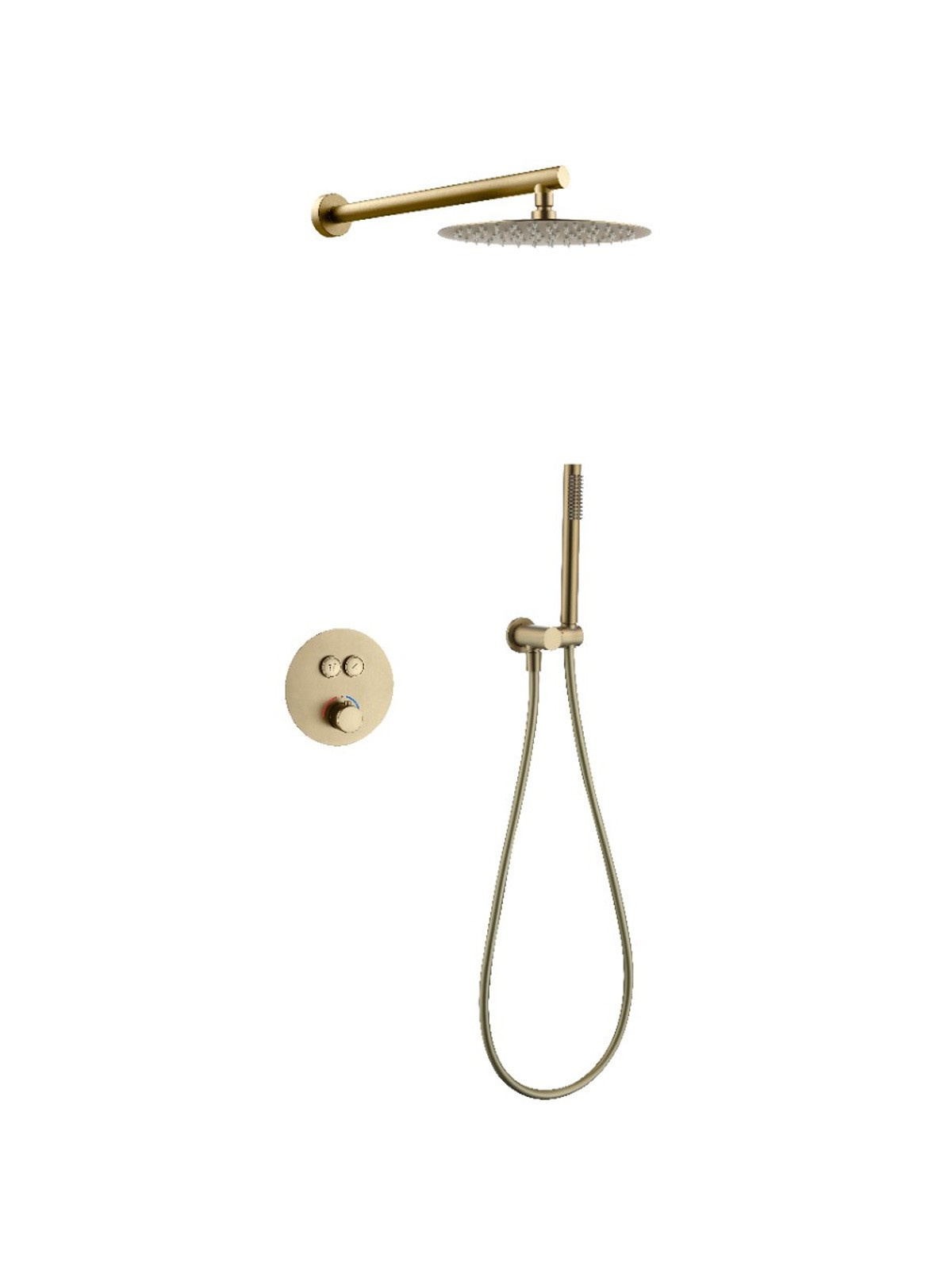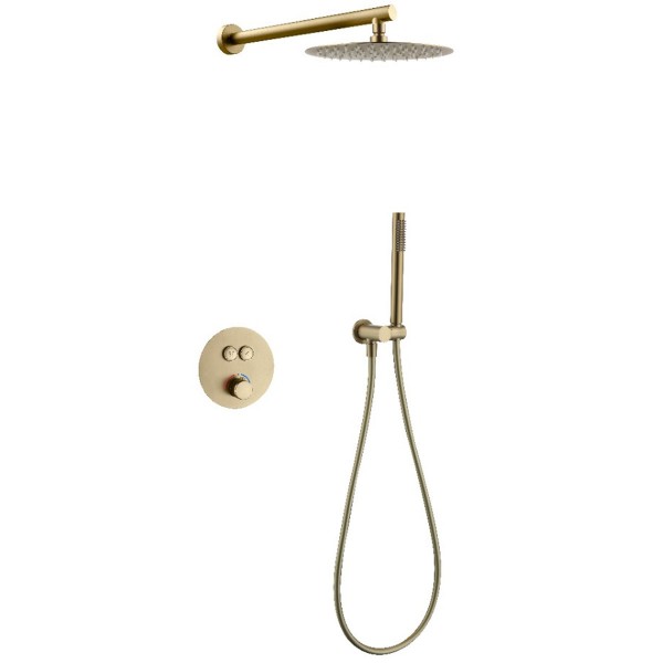 D117124011111BG Flow Душова система прихованого монтажу, на 2 споживачі, з термостатом, brushed gold (1 сорт)