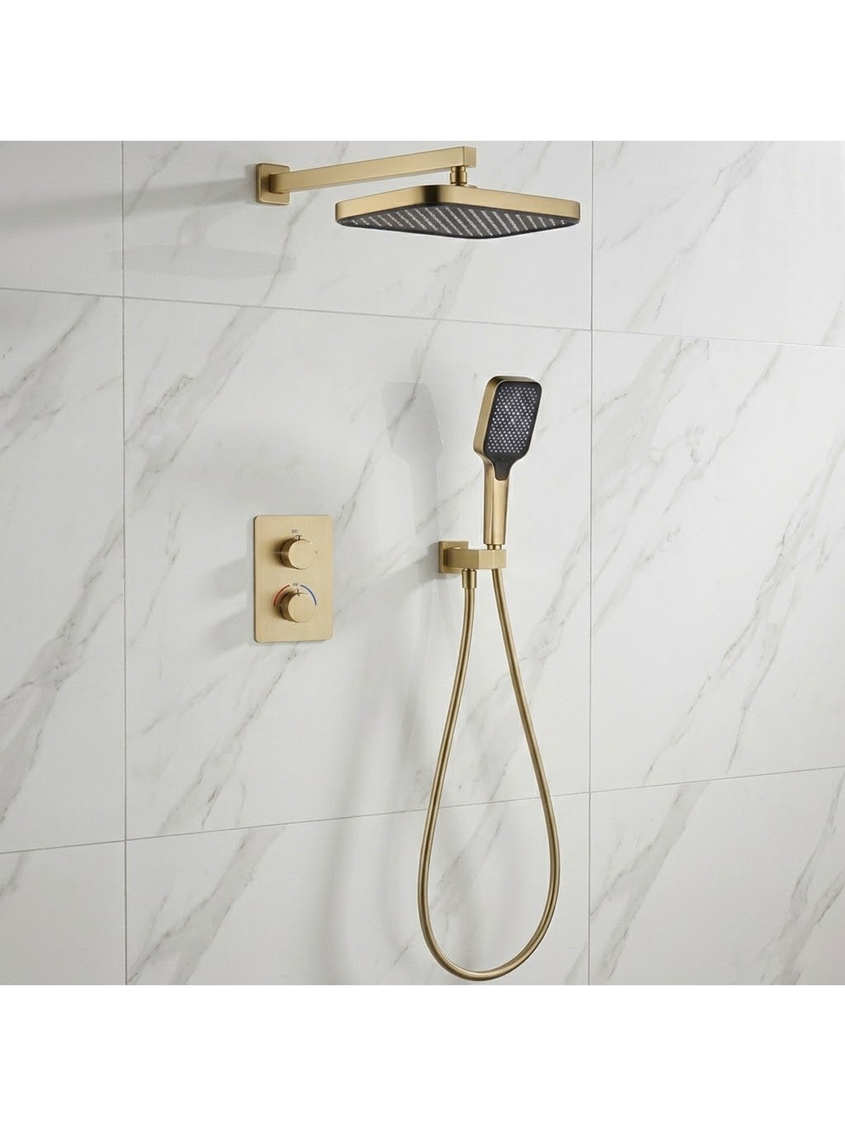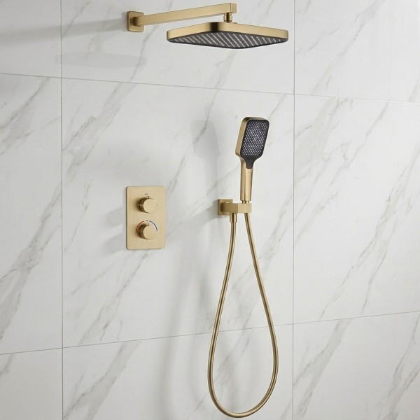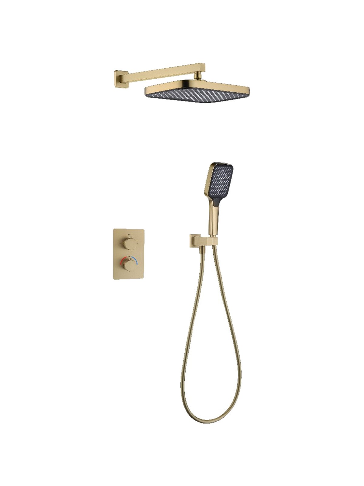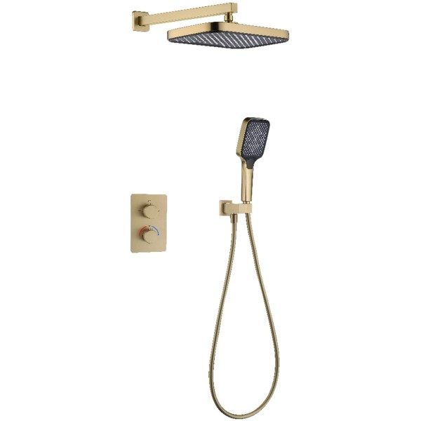 D117125011221BG Flow Душова система прихованого монтажу для душу, на 2 споживачі, з термостатом, brushed golg (1 сорт)