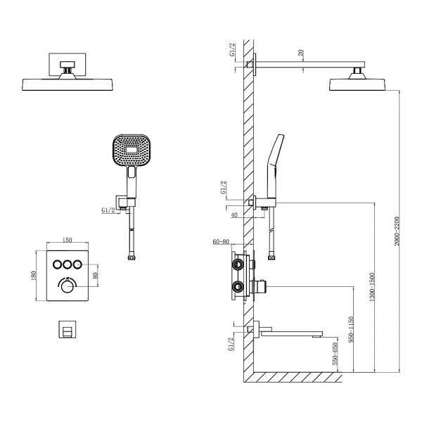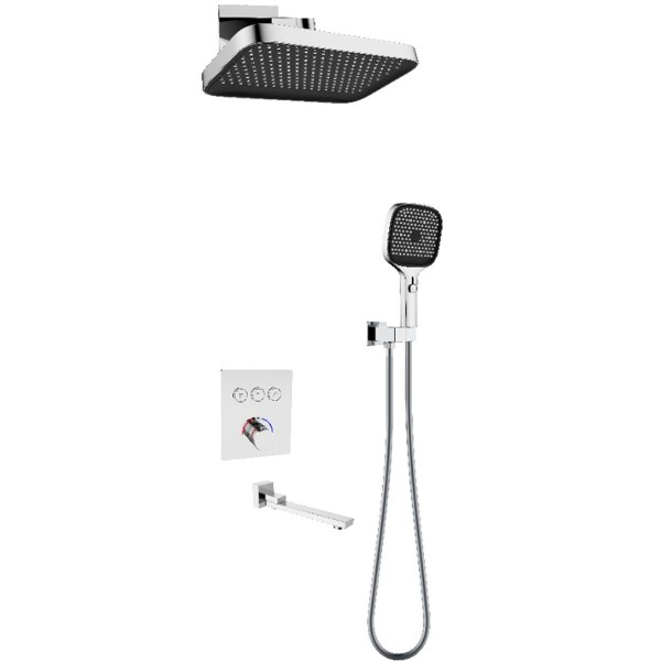 D117134011221C Flow Душова система прихованого монтажу для ванни/душу, на 3 користувача, з термостатом, з виливом, хром (1 сорт)