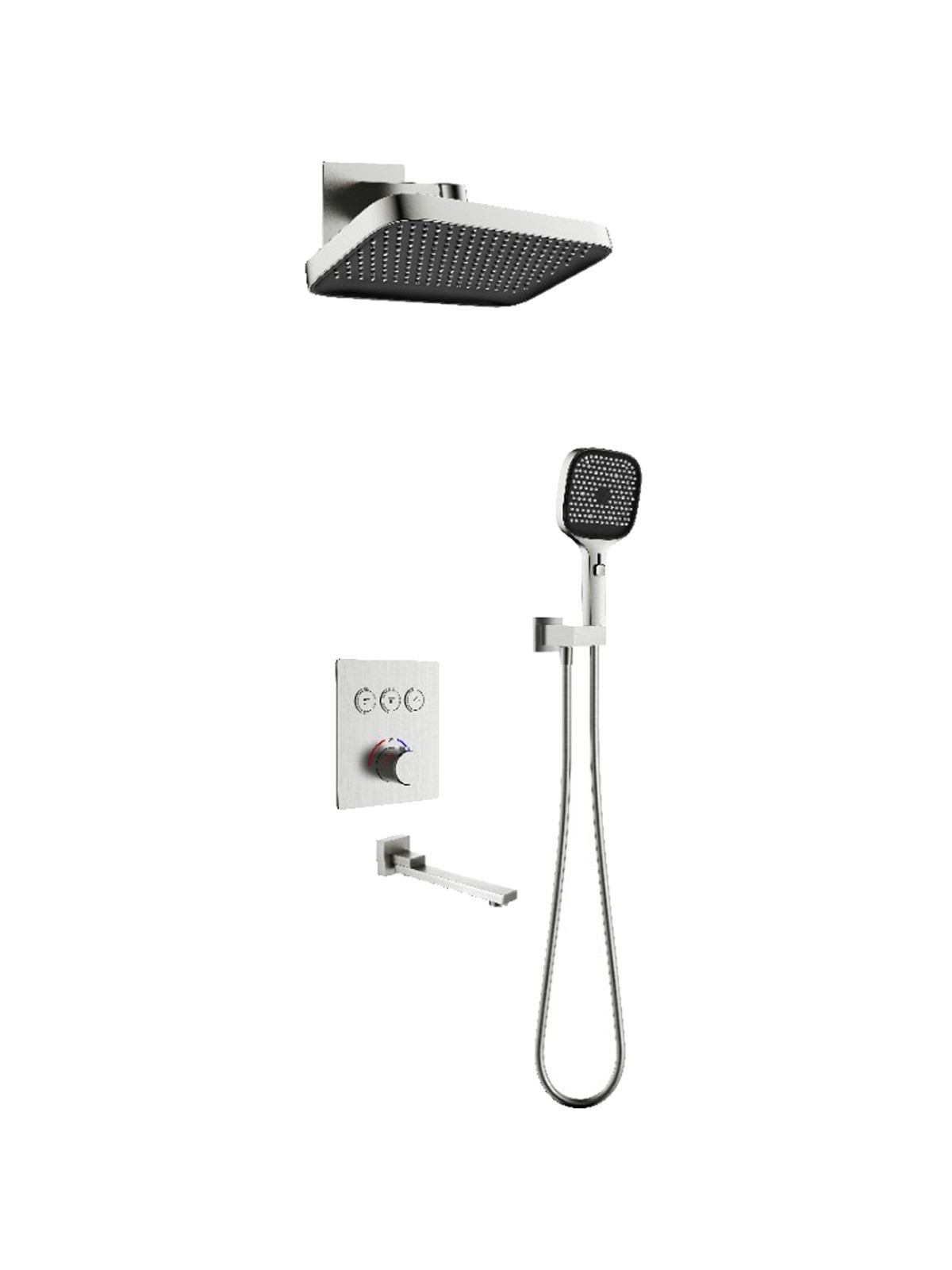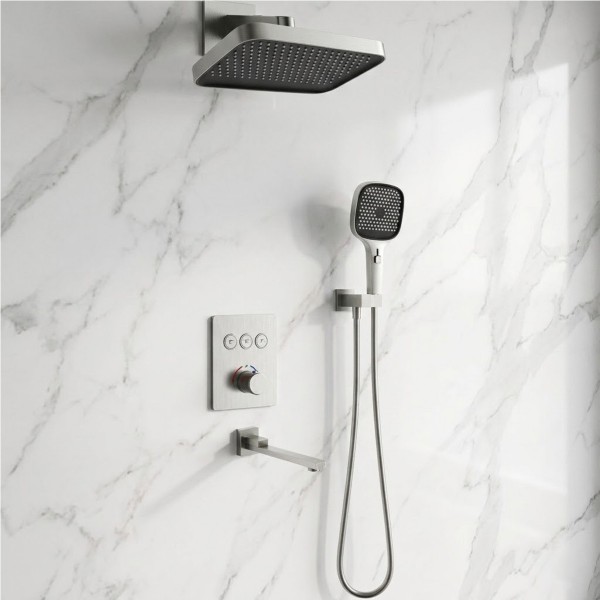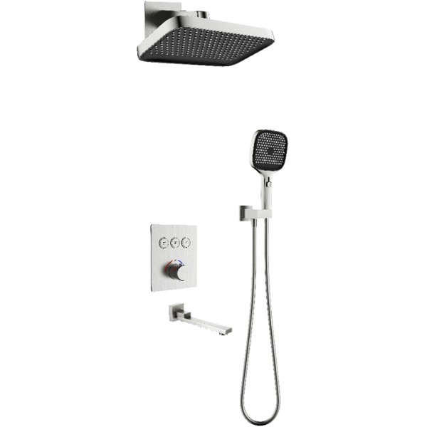 D117134011221BN Flow Душова система прихованого монтажу для ванни/душу, на 3 користувача, з термостатом, brush nickel (1 сорт)