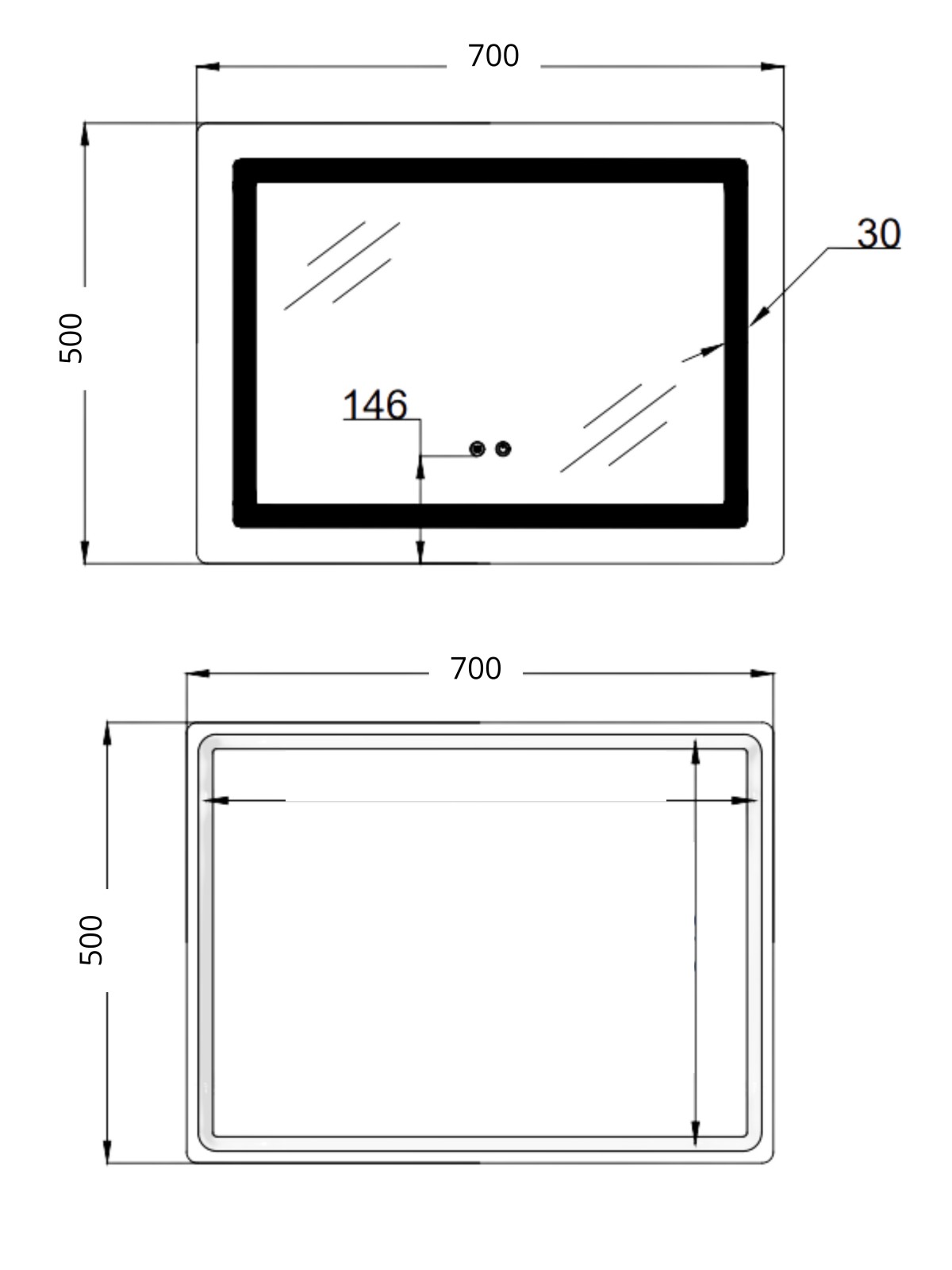 Габаритні розміри виробу (ШхГхВ), мм: 700х500х35