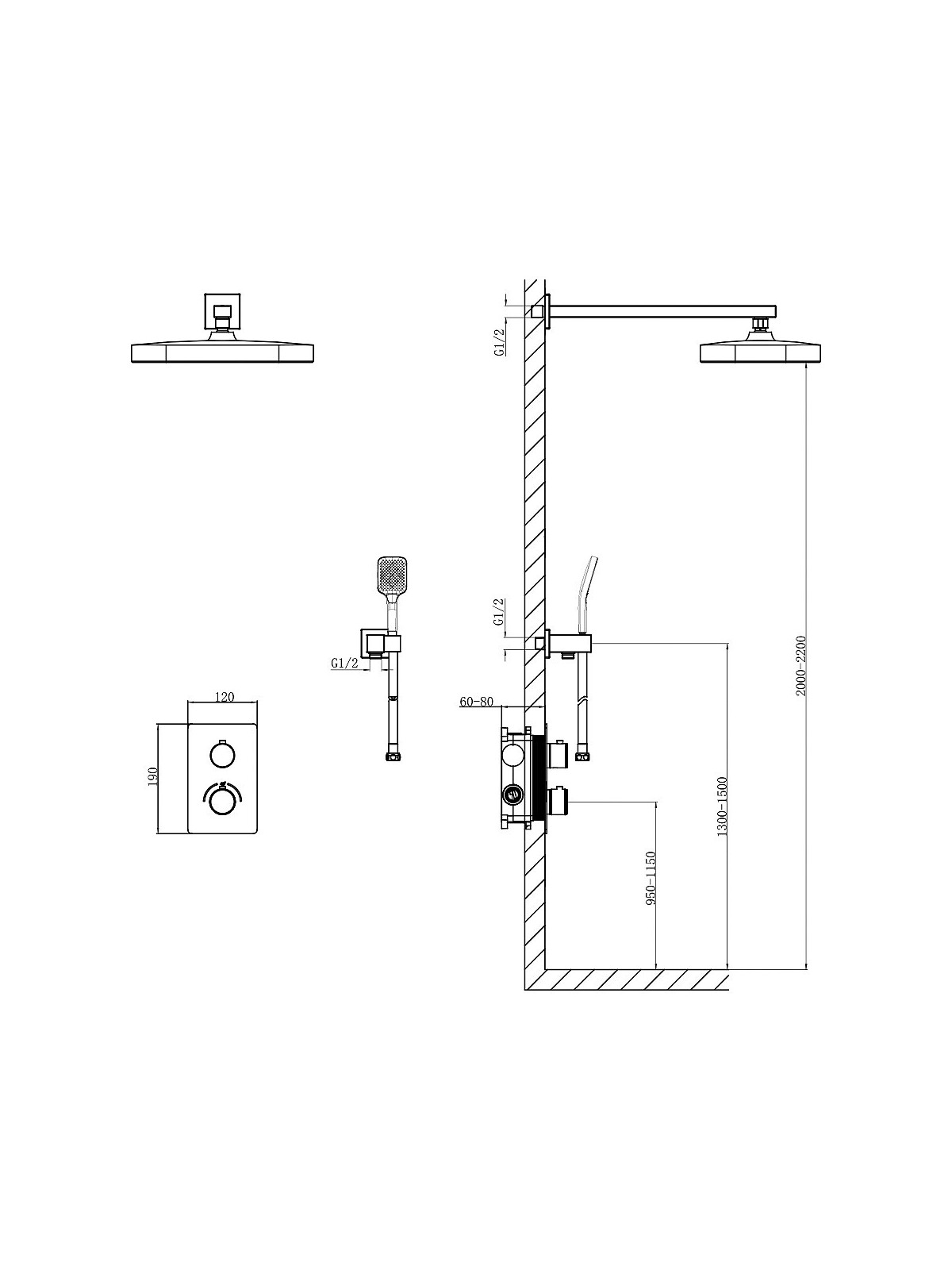 D117125011221BN Flow Душова система прихованого монтажу для душу, на 2 споживачі, з термостатом, brushed nicke (1 сорт)