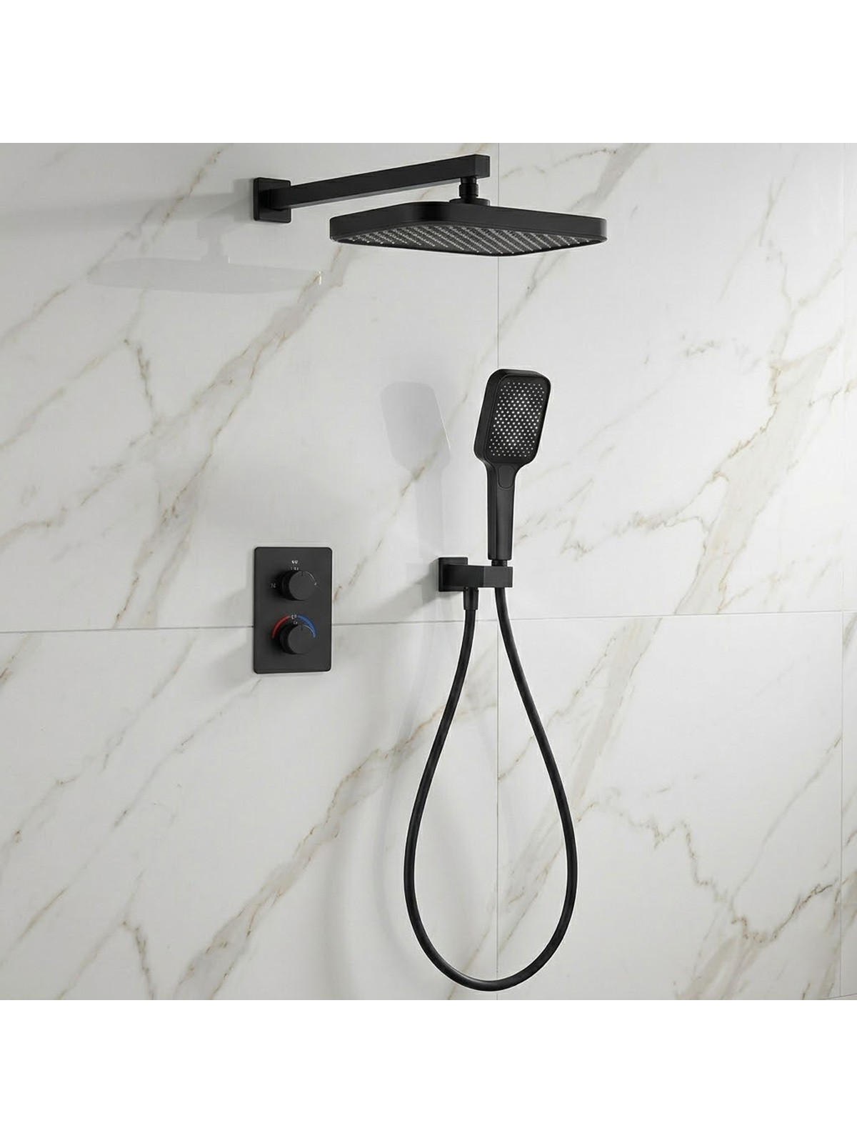 D117125011221BM Flow Душова система прихованого монтажу для душу, на 2 споживачі, з термостатом, чорний матовий (1 сорт)