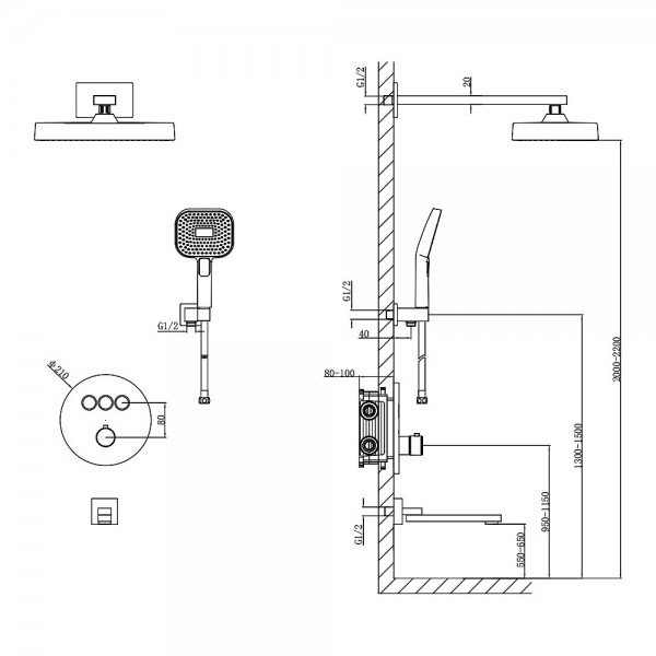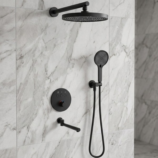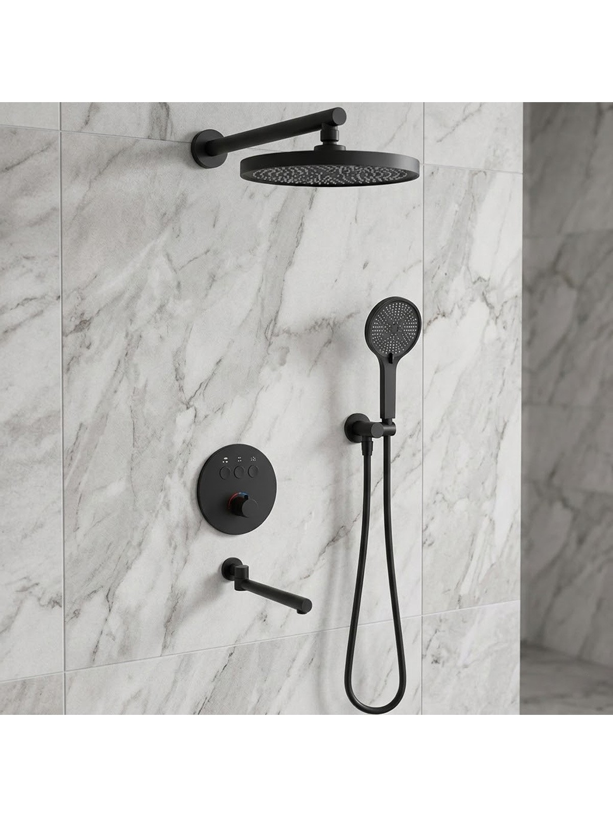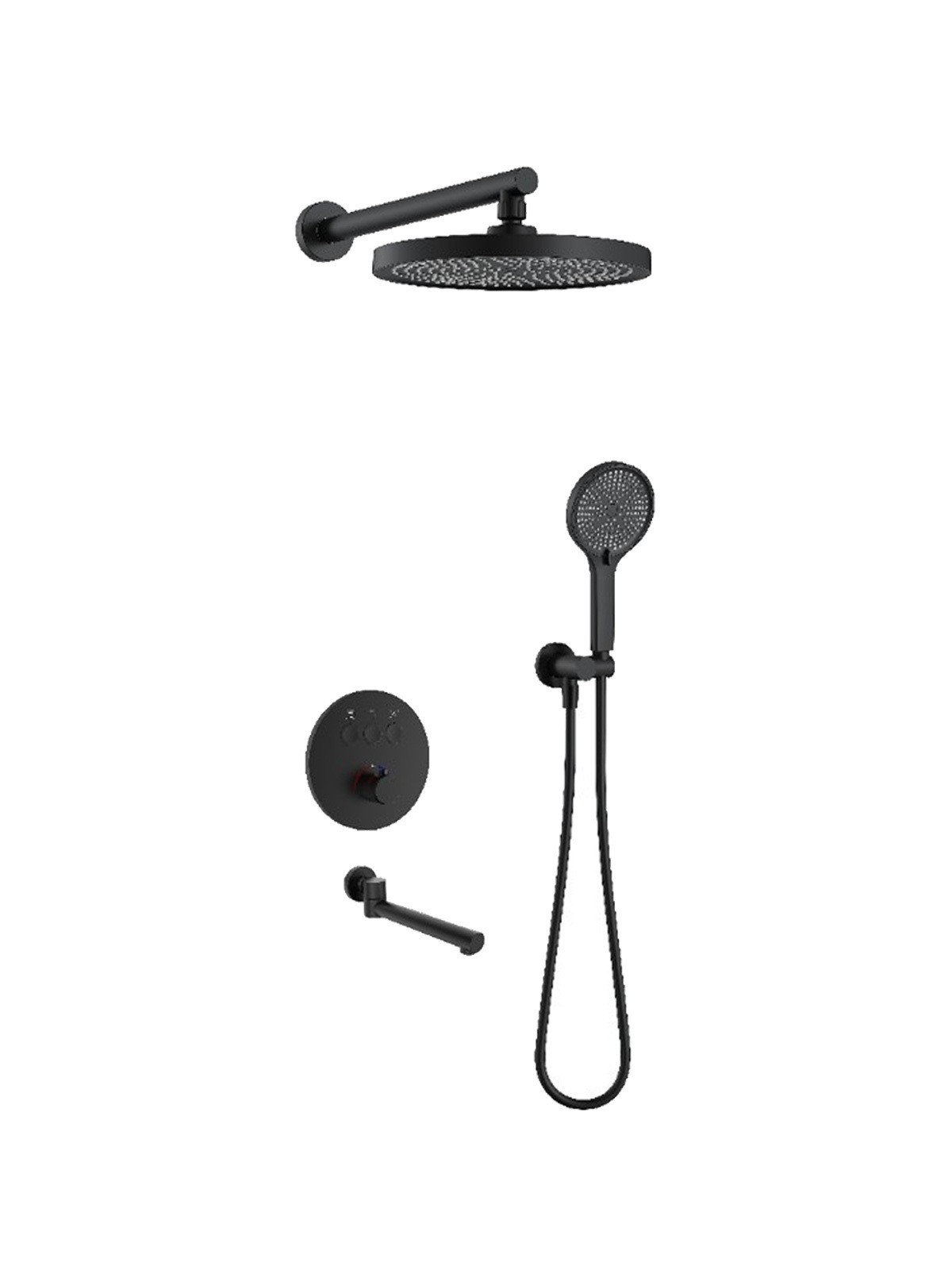 D117134011211MB Flow Душова система прихованого монтажу для ванни/душу, на 3 споживачі, з термостатом, з виливом, чорний матовий (1 сорт)