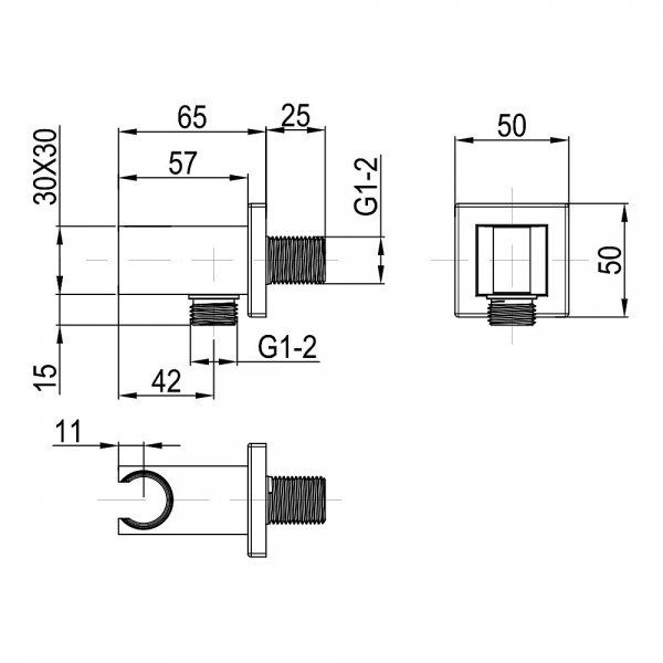 D113100000020MB Flow Підключення для душового шлангу з тримачем ручного душу, чорний матовий (1 сорт)