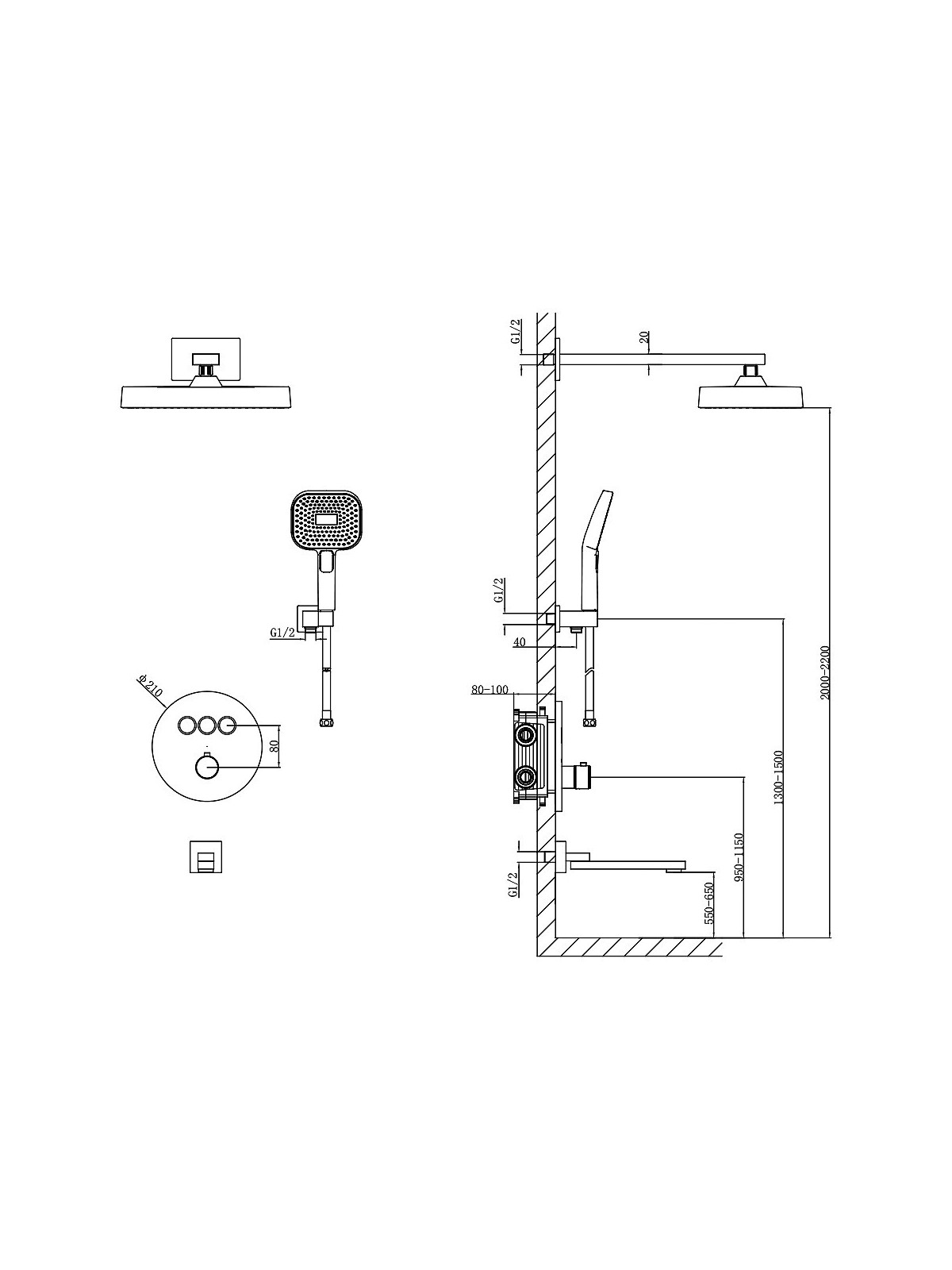 D117134011211C Flow Душова система прихованого монтажу для ванни/душу, на 3 споживачі, з термостатом, з виливом, хром (1 сорт)