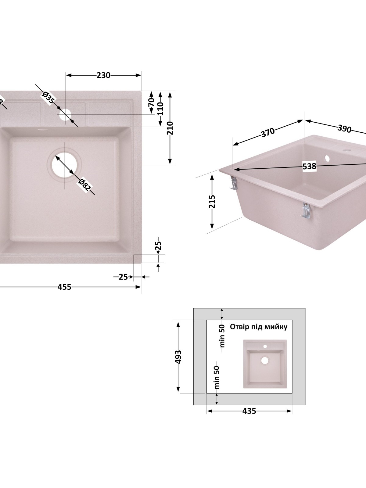 Комплектація: Мийка, сифон, злив/перелив, корзинчастий вентиль, кріплення.