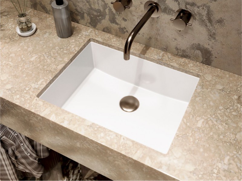 Прямокутний за формою чаші раковина має тип монтажу - під стільницю, врахуйте це перед замовленням меблів у ванну кімнату.