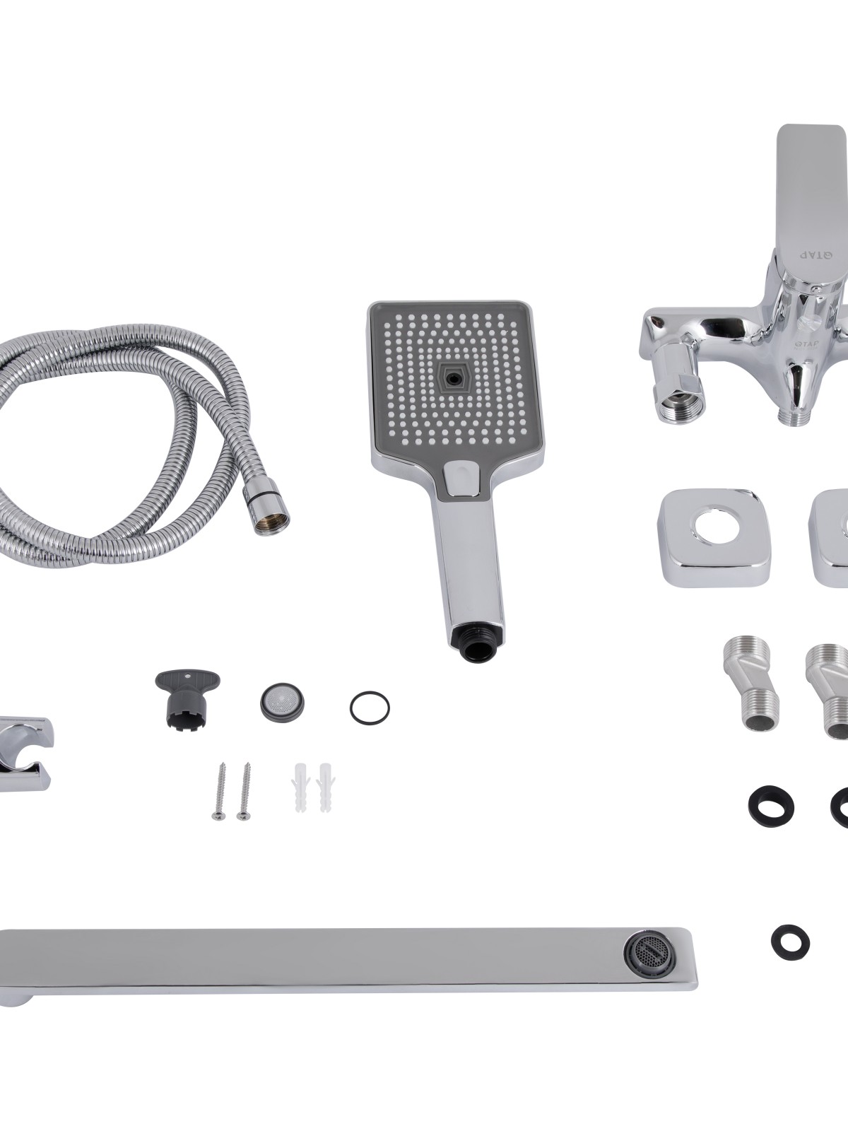 Комплектація: Змішувач, лійка для ручного душу, душовий шланг, кронштейн, деталі кріплення.