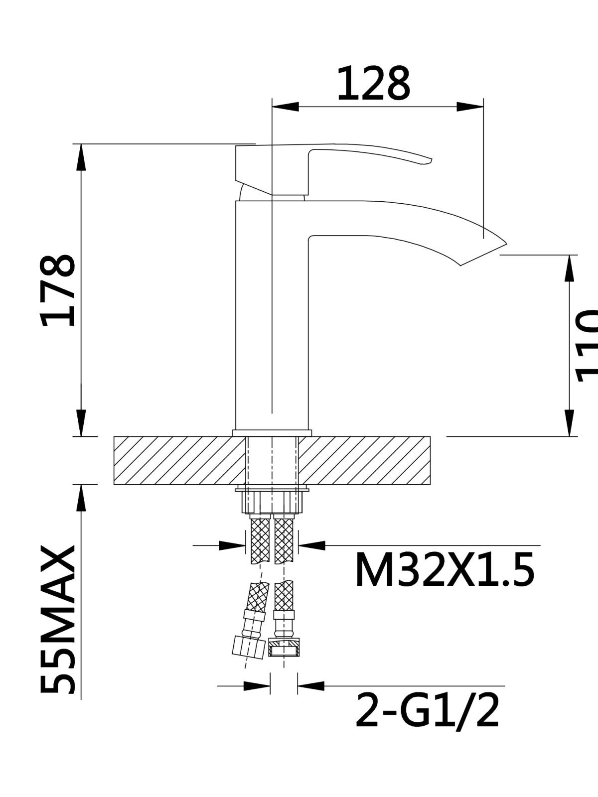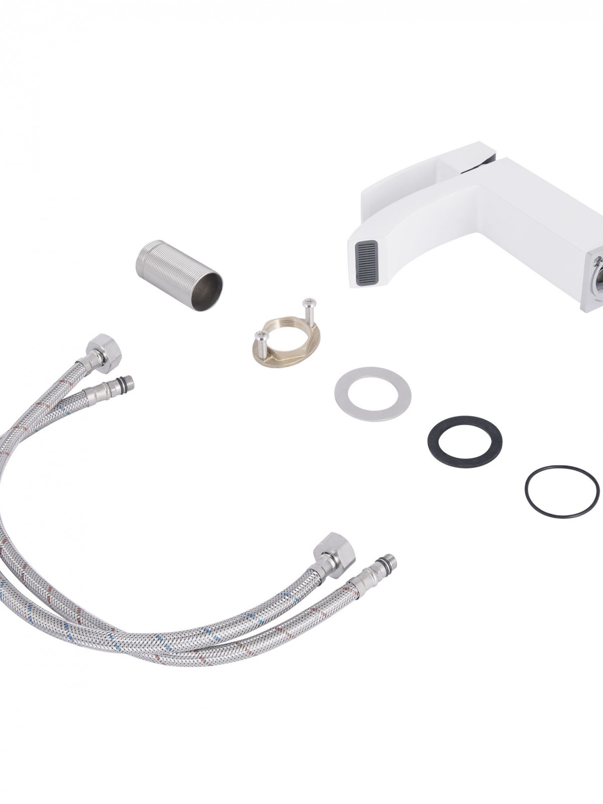 Комплектація: Змішувач, гнучкий підвід, кріпильні деталі.