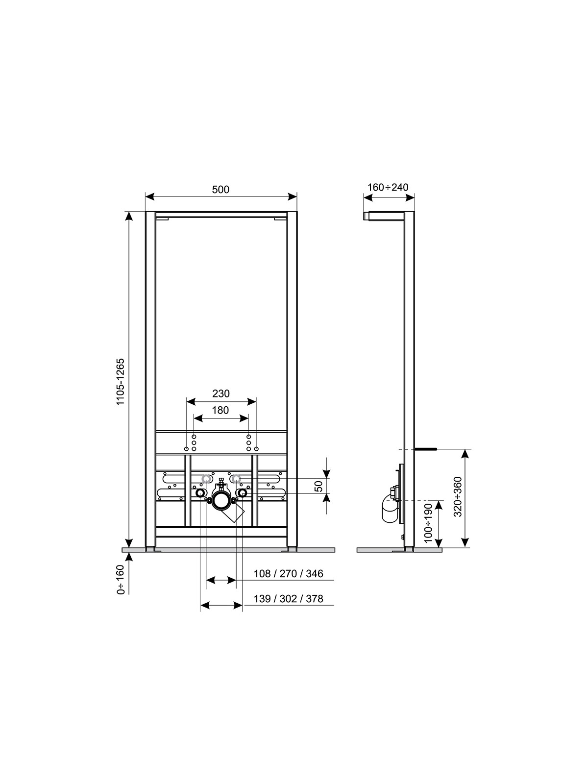 Додаткові характеристики: Швидке регулювання по висоті 1105-1265 мм та глибині 155-235 мм. Змивне коліно витримує високу температуру. Максимальне навантаження на виріб: 400 кг.