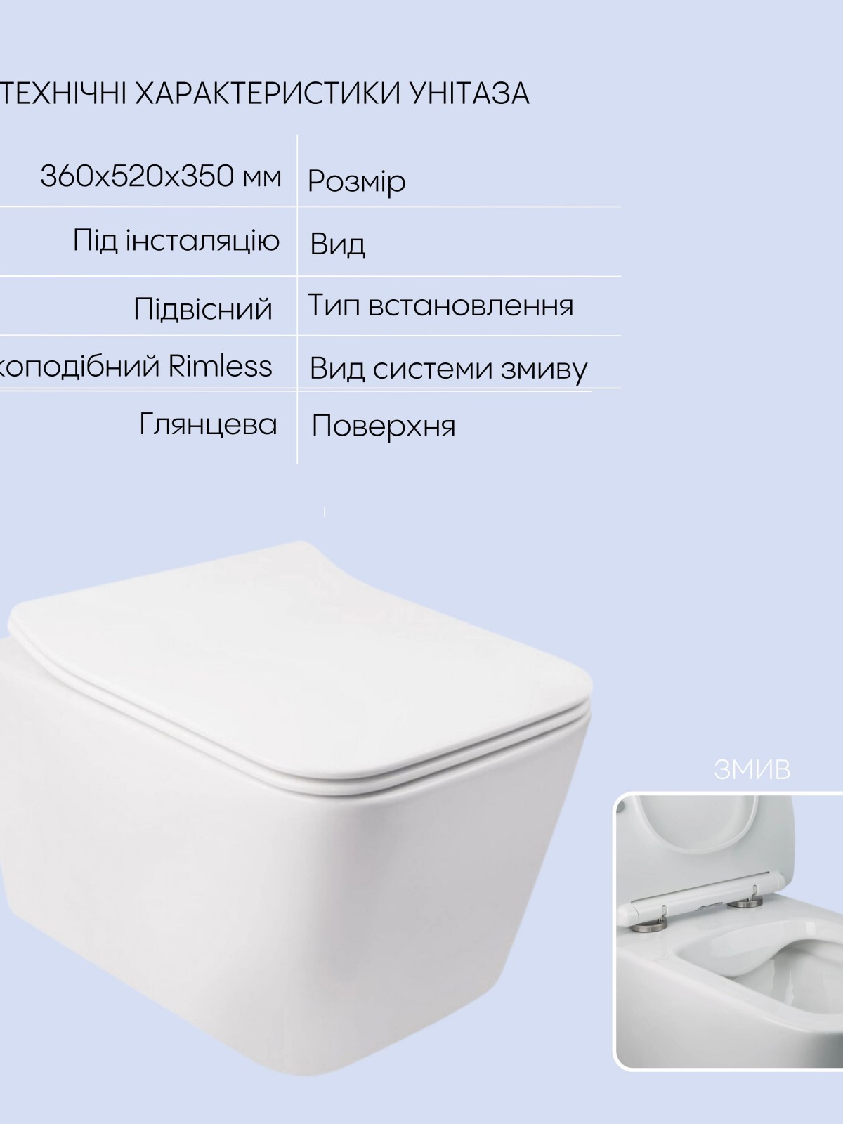 Вид системи змиву: Rimless