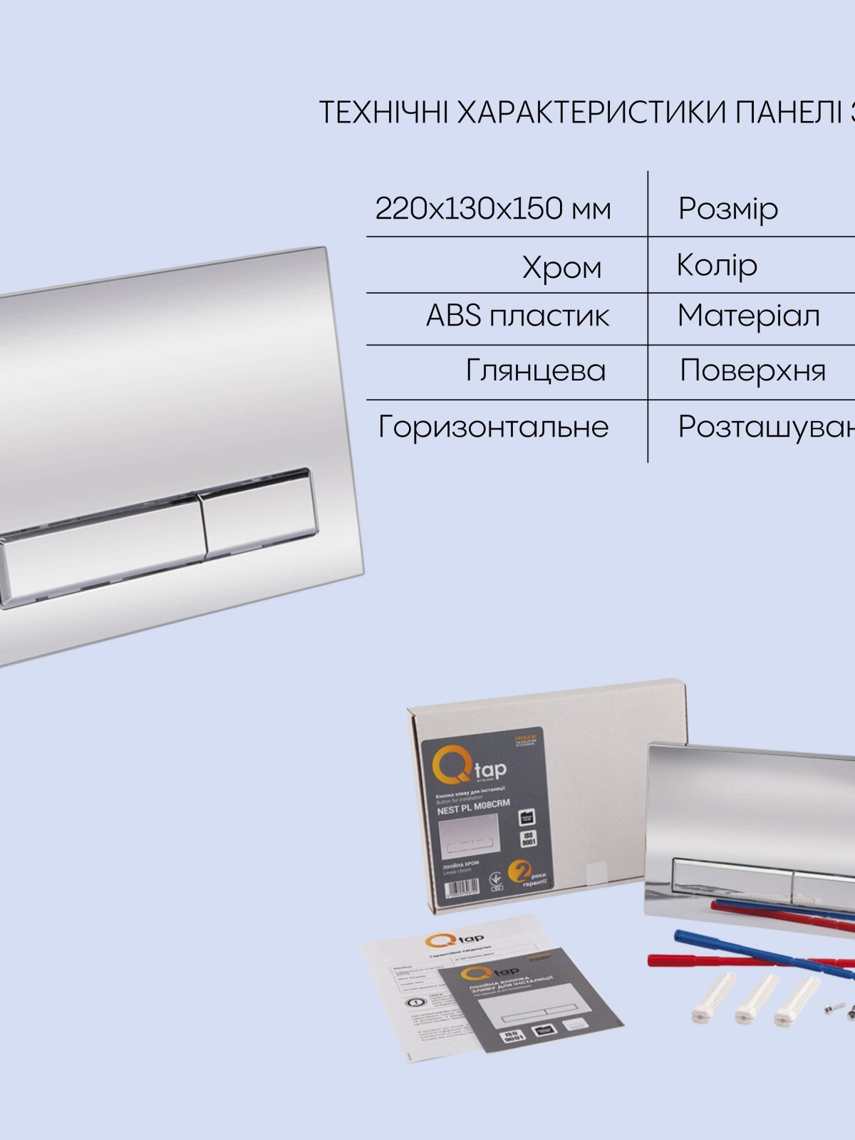 Склад набору: Інсталяція: Qtap Nest QT0133M425. Панель змиву: Qtap Nest QT0111M08381CRM. Унітаз з сидінням: Qtap Swan QT16335178W.