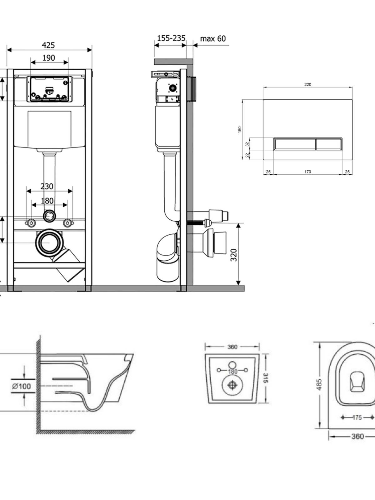 Тип виробу: Набір інсталяція + унітаз із сидінням