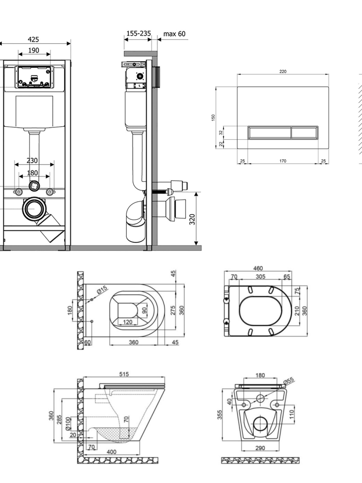 Тип виробу: Набір інсталяція + унітаз із сидінням