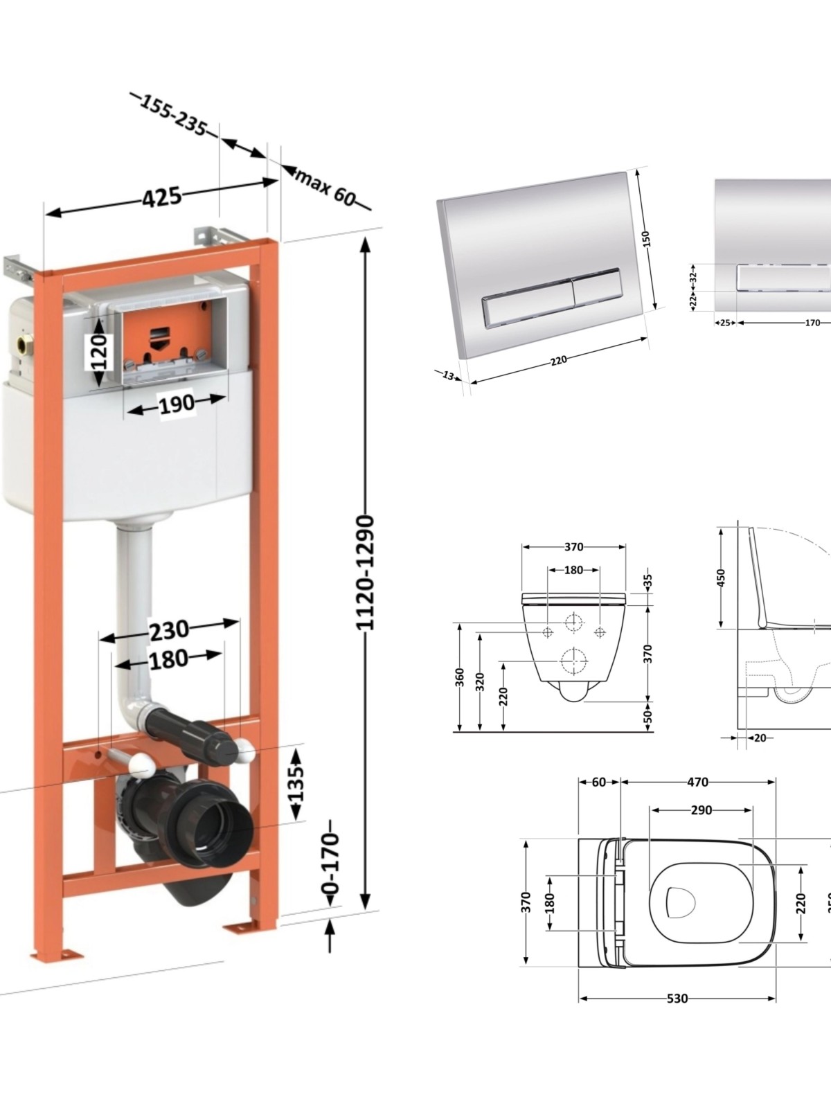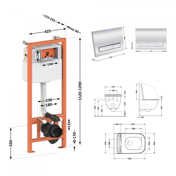Тип виробу: Набір інсталяція + унітаз із сидінням