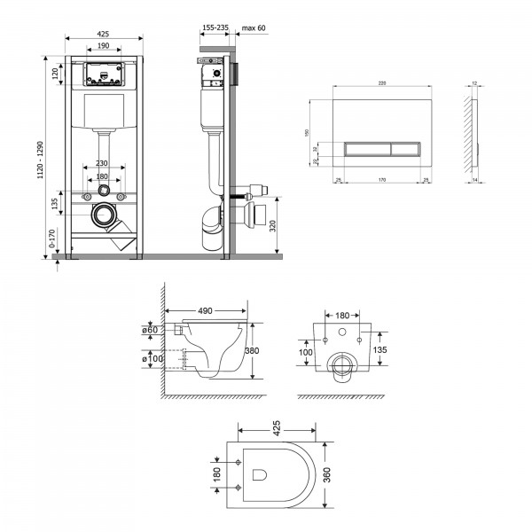 Вага брутто, кг: 11,9 – інсталяція; 0,38 – панель змиву; 27 – унітаз