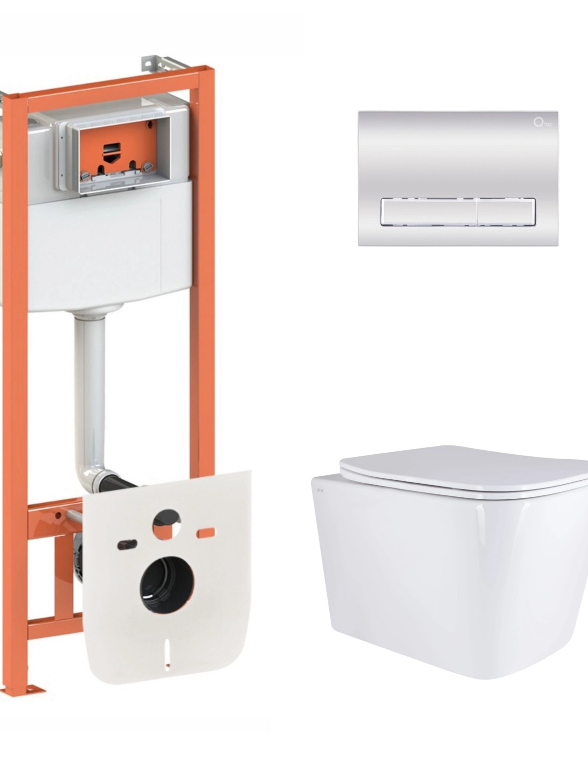 Склад набору: Інсталяція: Qtap Nest QT0133M425. Панель змиву: Qtap Nest QT0111M11111SAT. Унітаз із сидінням: Qtap Tern QT0111M08381CRM.