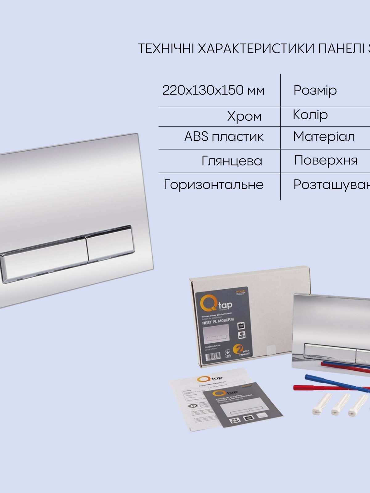 Склад набору: Інсталяція: Qtap Nest QT0133M425. Панель змиву: Qtap Nest QT0111M08381CRM. Унітаз з сидінням: Qtap Jay QT07335176W.