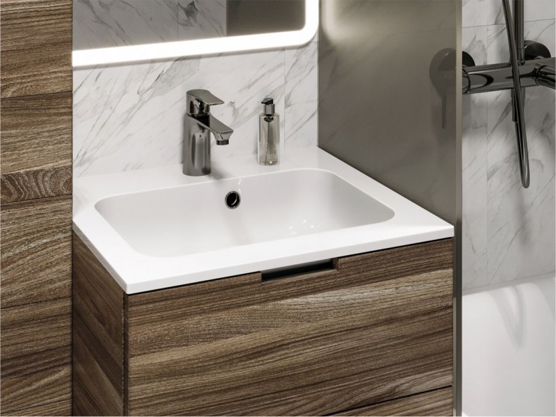 Квадратний за формою чаші раковина має тип монтажу - врізний;на тумбу, врахуйте це перед замовленням меблів у ванну кімнату.